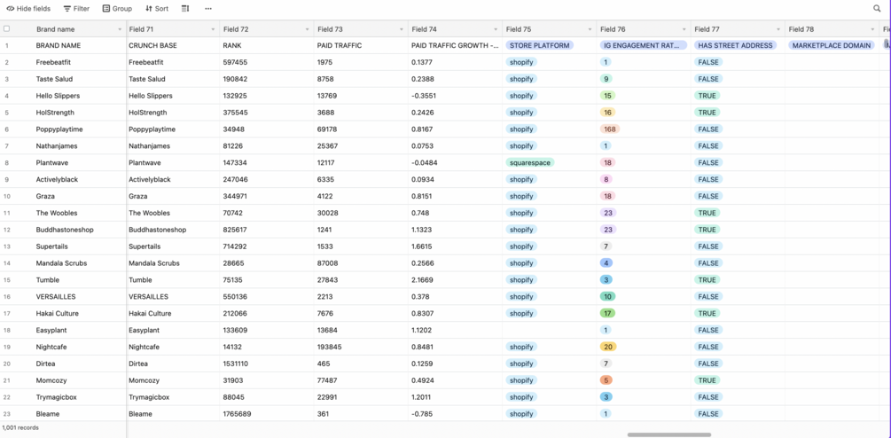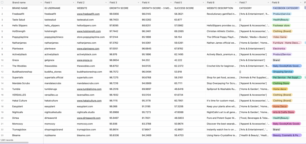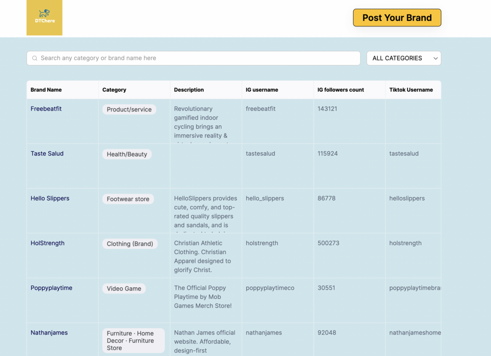 You'll get a Airtable sheet with 1000 DTC brands