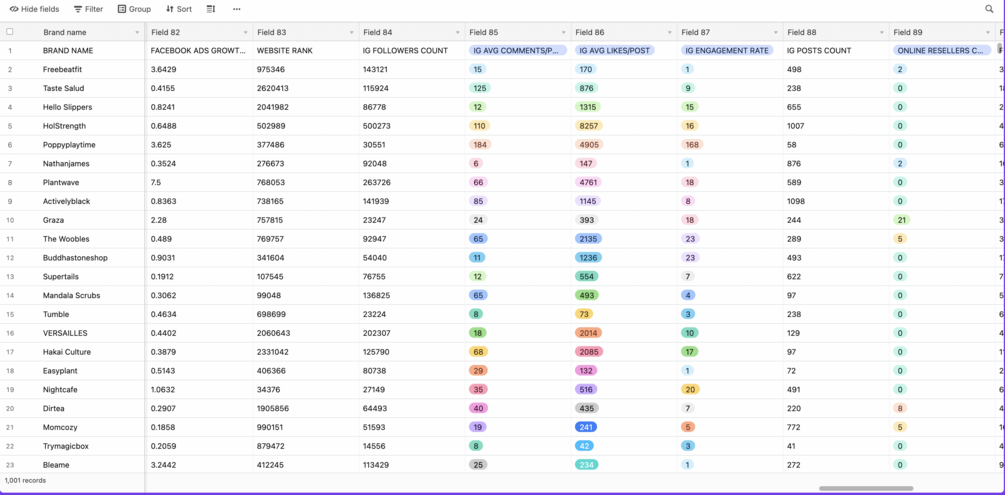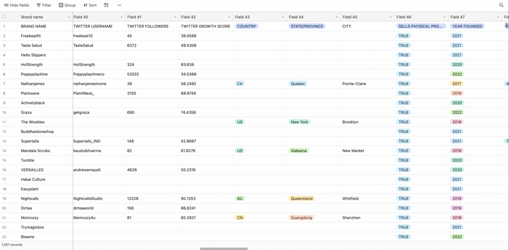 You'll get a Airtable sheet with 1000 DTC brands