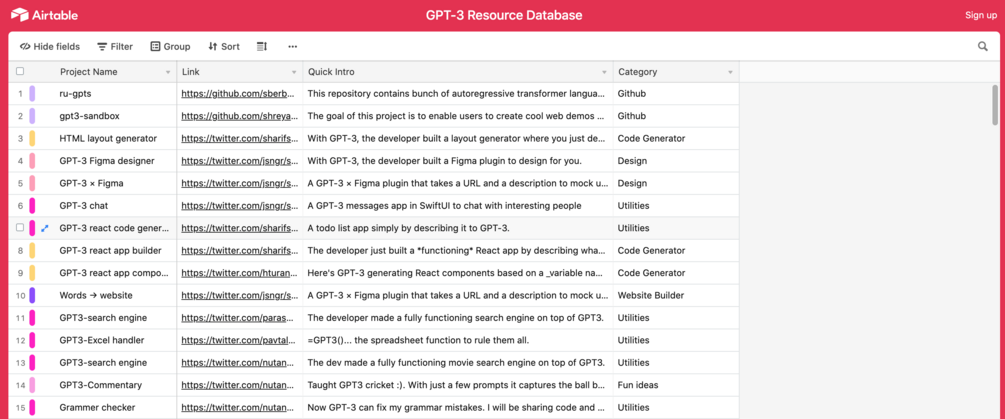 For the past few months 📅, I am working on collecting all the GPT-3 related resources, that inlcludes, tweets , github repos, articles, and much more for my next GPT-3 product idea. By now, the resource count have reached almost 170+🤩 and thought of putting this valuable database to public and here I am.